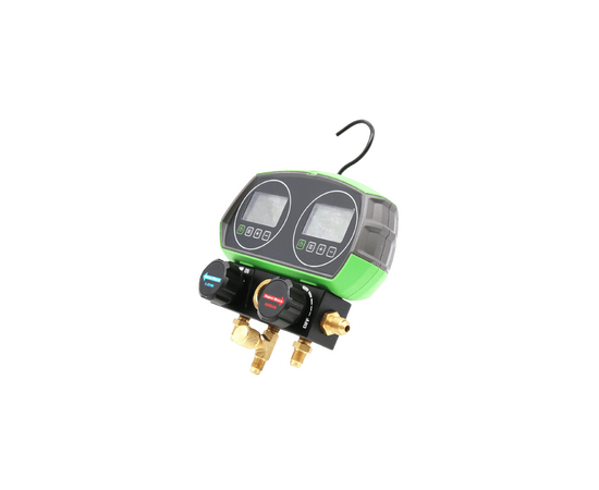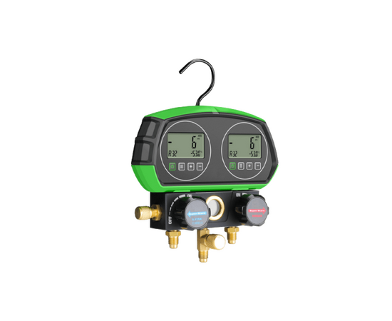 В память электронного манометрического коллектора Super Stars ST-B268D занесены параметры 90 фреонов. Прибор производит измерения давления на стороне нагнетания и всасывания, показывает температуру конденсации и испарения, измеряет температуру трубопроводов на стороне нагнетания и всасывания, производит вычисление степени перегрева и переохлаждения.