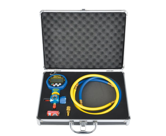 Электронный одновентильный коллектор DSZH WК-6881L со смотровым стеклом, двумя шлангами, адаптером AD-89 в алюминиевом кейсе.