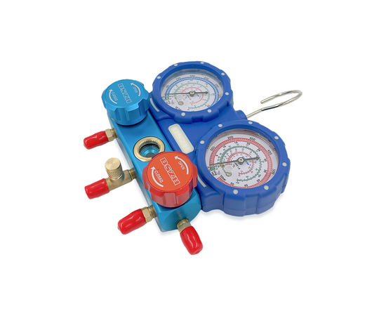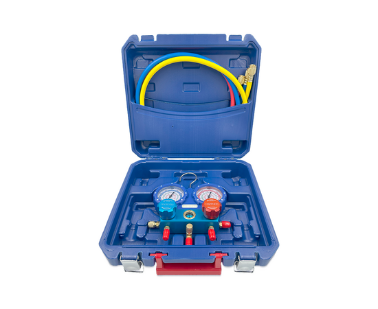 Для работы с фреонами: R22, R32, R134, R410. Диаметр манометров 68.