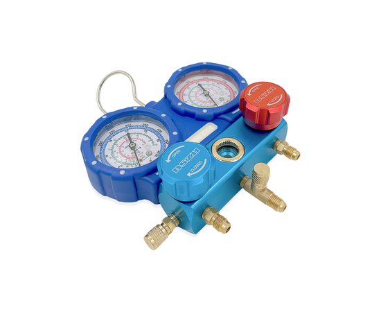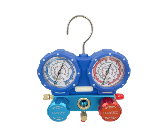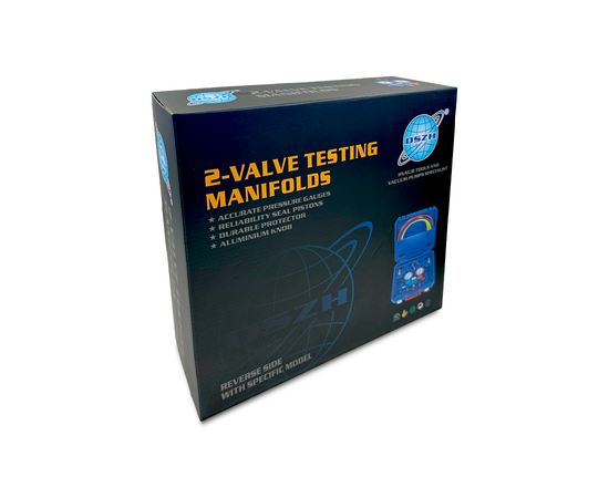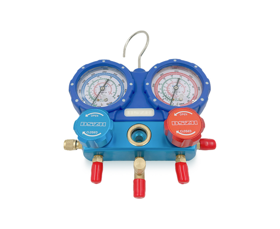 Манометрическая 2-х вентильная станция DSZH WK-P3603S - инструмент для определения давления в холодильном контуре. Помогает определить: вакуум, температуру кипения фреона, давление разных фреонов. Универсален под все виды наиболее используемых фреонов.