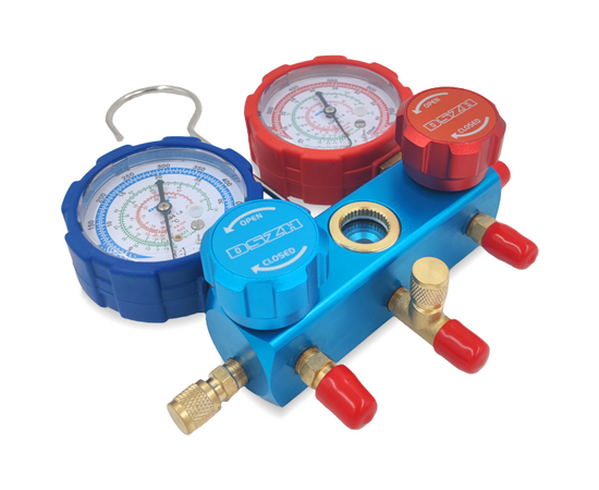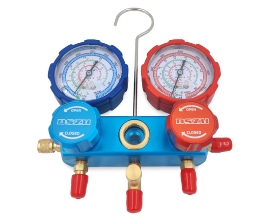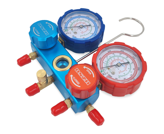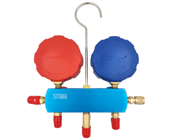 Манометрический 2-х вентильный коллектор DSZH CT-136G - инструмент для определения давления в холодильном контуре. Помогает определить: вакуум, температуру кипения фреона, давление разных фреонов. Универсален под все виды наиболее используемых фреонов.
