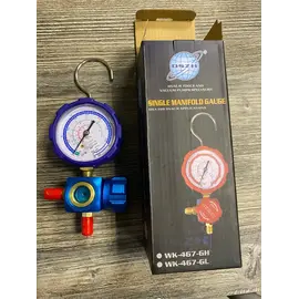 Универсальный манометрический 1 вентильный коллектор DSZH WK-468GL со смотровым стеклом, с мановакуумметром 68 мм в защитном кожухе.