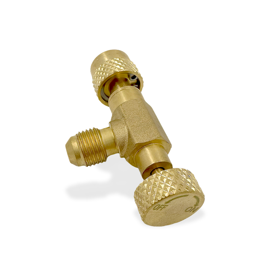 Изготовлен из высококачественной латуни с антикоррозийной обработкой, что обеспечивает устойчивость к агрессивным средам и длительный срок службы. Вентиль оснащен двумя резьбовыми соединениями, что упрощает подключение манометрических коллекторов, вакуумных насосов и заправочных шлангов.