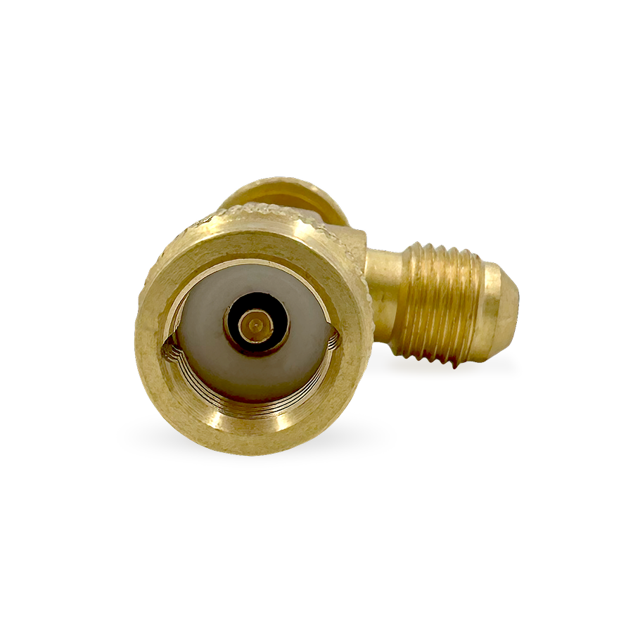 Изготовлен из высококачественной латуни с антикоррозийной обработкой, что обеспечивает устойчивость к агрессивным средам и длительный срок службы. Вентиль оснащен двумя резьбовыми соединениями, что упрощает подключение манометрических коллекторов, вакуумных насосов и заправочных шлангов.