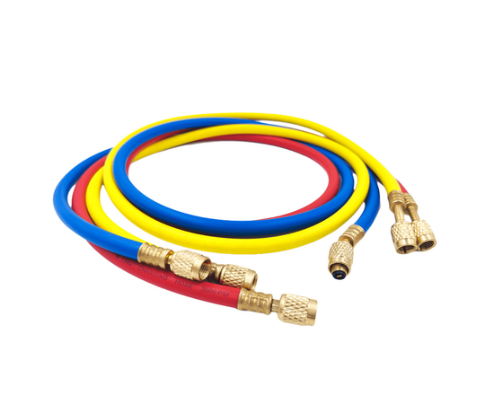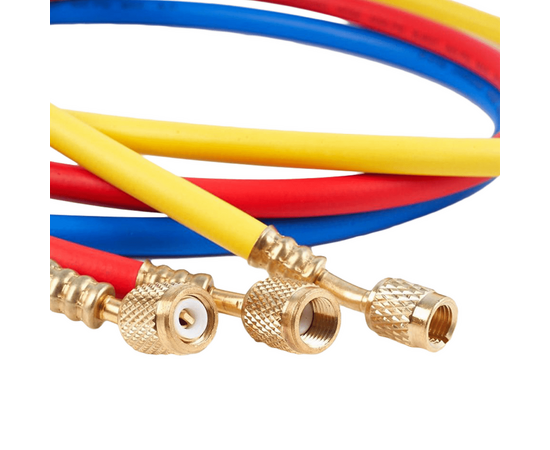 Заправочный шланг 1.5 м для заправки и вакуумирования кондиционеров. Шланги подсоединяются к вакуумным насосам, баллонам, манометрическим коллекторам. Для работы с фреонами R-12, R22, R134, R404A, R407C, R507, R600.