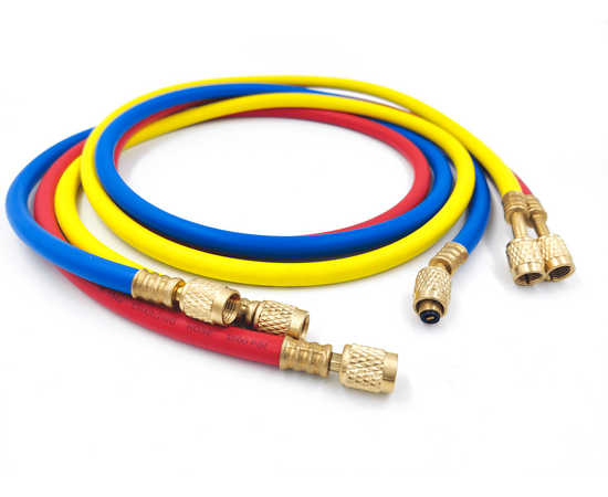 Комплект состоящий из 3-х заправочных шлангов по 1.5м для заправки и вакуумирования кондиционеров.