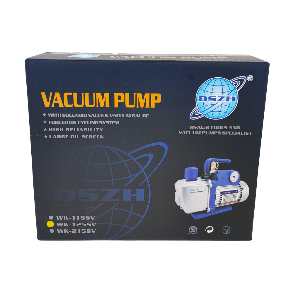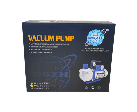 Вакуумный насос DSZH WK-125SV предназначен для вакуумирования контура холодильной системы, с целью удаления из неё воздуха и паров воды. Наличие паров воды в холодильной системе негативно сказывается на её работе, поэтому глубина технического вакуума важное преимущество насоса DSZH WK-125SV.