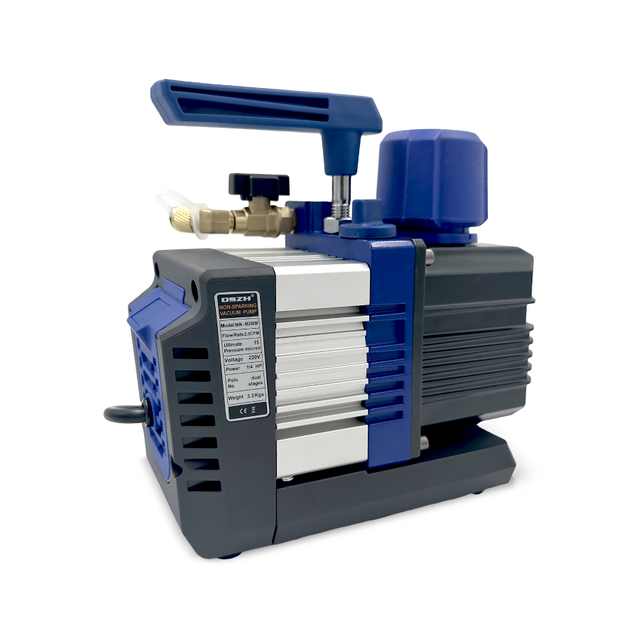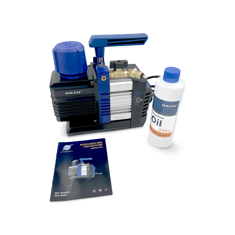 Вакуумный насос DSZH WK - M2BM - пластинчато-роторный вакуумный насос со скользящими лопастями. Используется для удаления воздуха и влаги из фреоновых контуров систем холодоснабжения и кондиционирования. Насос снижает давление в системе, в результате чего влага, если она есть в системе, испаряется и удаляется.