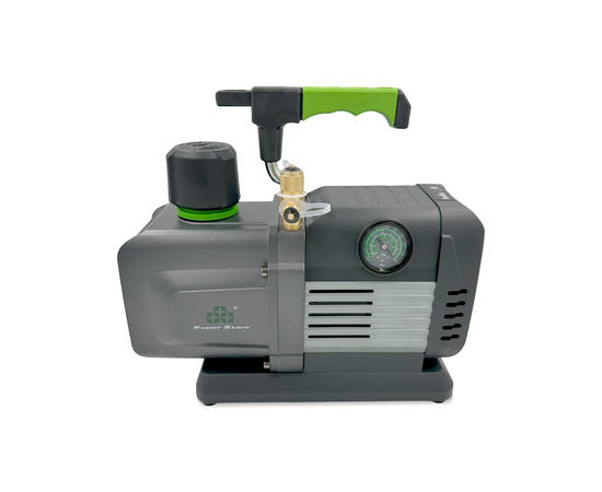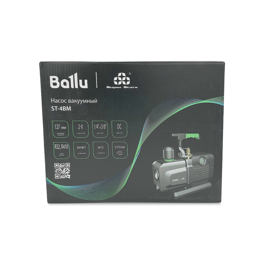 Вакуумный насос Ballu Super Stars ST-4BM с соленоидным вентилем и вакуумметром - пластинчато-роторный вакуумный насос со скользящими лопастями. Используется для удаления воздуха и влаги из фреоновых контуров систем холодоснабжения и кондиционирования. Насос снижает давление в системе, в результате чего влага, если она есть в системе, испаряется и удаляется.