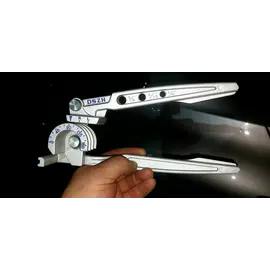 Трубогиб DSZH WK-N368 - это устройство для гибки медных труб диаметров 1/4", 5/16", 3/8", получившее распространение благодаря ряду достоинств: легкости, оперативности работ, обеспечивающейся простым принципом действия. Устройство элементарно: диск с выемкой, в которую укладывается труба соответствующего диаметра; крючок-упор, в котором фиксируется край трубы; рычаг с аналогичным упором.