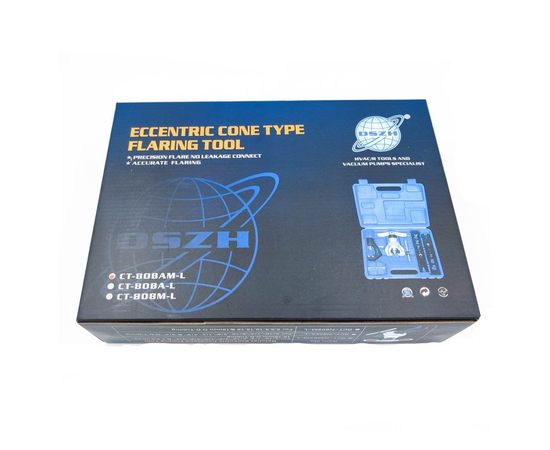 Вальцовка эксцентриковая DSZH CT-808AM-L является универсальным инструментом, предназначенным для развальцовки дюймовых и метрических медных и алюминиевых труб диаметром: 1/4", 5/16", 3/8", 1/2", 5/8", 3/4" и от 6 мм до 19 мм.