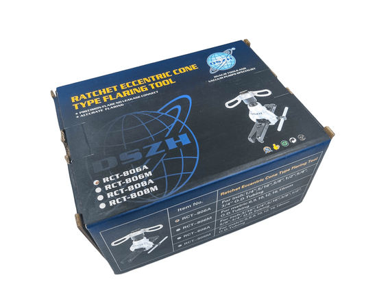 Вальцовка эксцентриковая с реверсом DSZH RCT-806A является универсальным инструментом, предназначенным для развальцовки дюймовых медных и алюминиевых труб диаметром: 1/4" - 3/4". Меняет геометрию с высоким радиусом для придания сгибу округлой формы, чтобы накрутить латунную гайку.