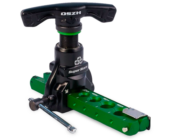 Развальцовка для медных, алюминиевых труб, облегченная, с ограничителем подачи трубы. Вальцовка ST-806FT-L подходит для медных труб диаметром: 1/4", 5/16", 3/8", 1/2", 5/8", 3/4" и 6, 8, 10, 12, 16, 19 миллиметров. Проста в использовании и имеет точный результат развальцовки, благодаря фиксаторам и надежным креплениям.