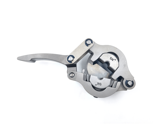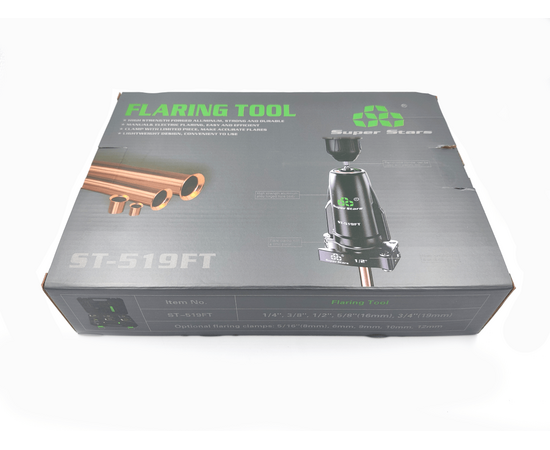 Универсальная развальцовка с эксцентриком, облегченная, со сменными насадками для дюймовых медных и алюминиевых труб диаметром: 1/4", 3/8", 1/2", 5/8" (16mm), 3/4" (19mm).