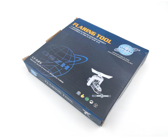 Универсальная разбортовка DSZH CT-525F – ручная универсальная разбортовка предназначена для развальцовки торцов отожжённых медных и алюминиевых, а также тонкостенных латунных трубок. Данная разбортовка изготовлена из качественной стали.Развальцовка DSZH CT-525F позволяет изготавливать качественный конус на обрабатываемой трубке без наволакивания металла на внутренней стороне сформированного конуса, без трещин конуса, надрывов металла, морщин, задиров и овальности конуса.